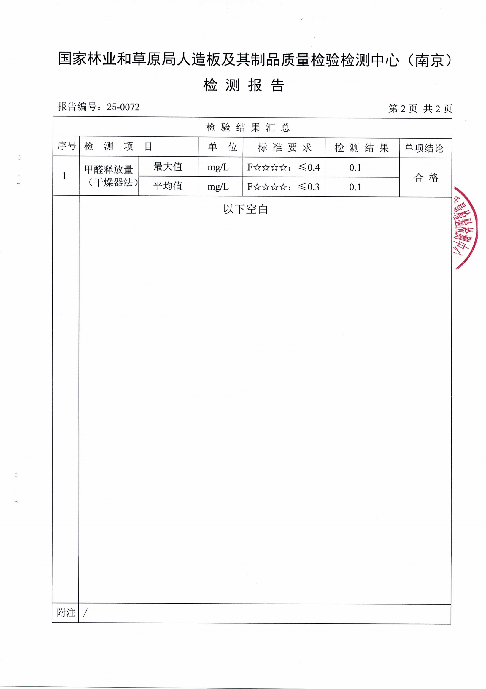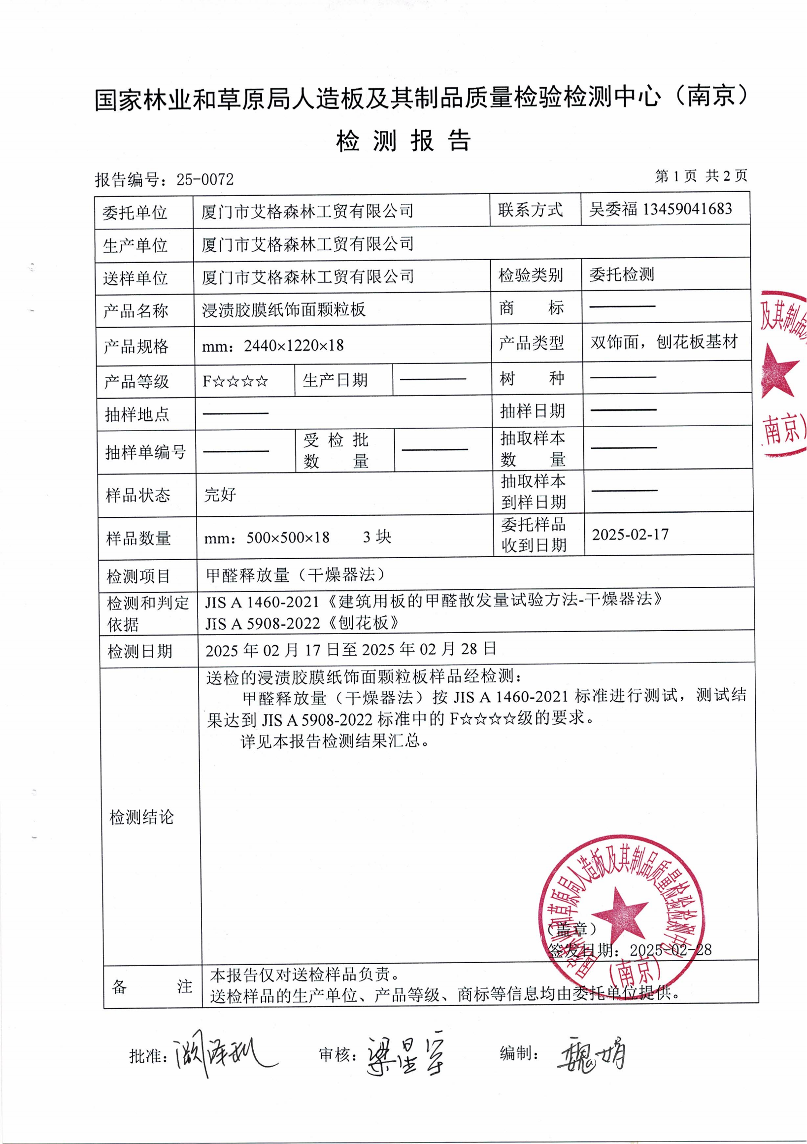 實木多層板ENF級檢測報告